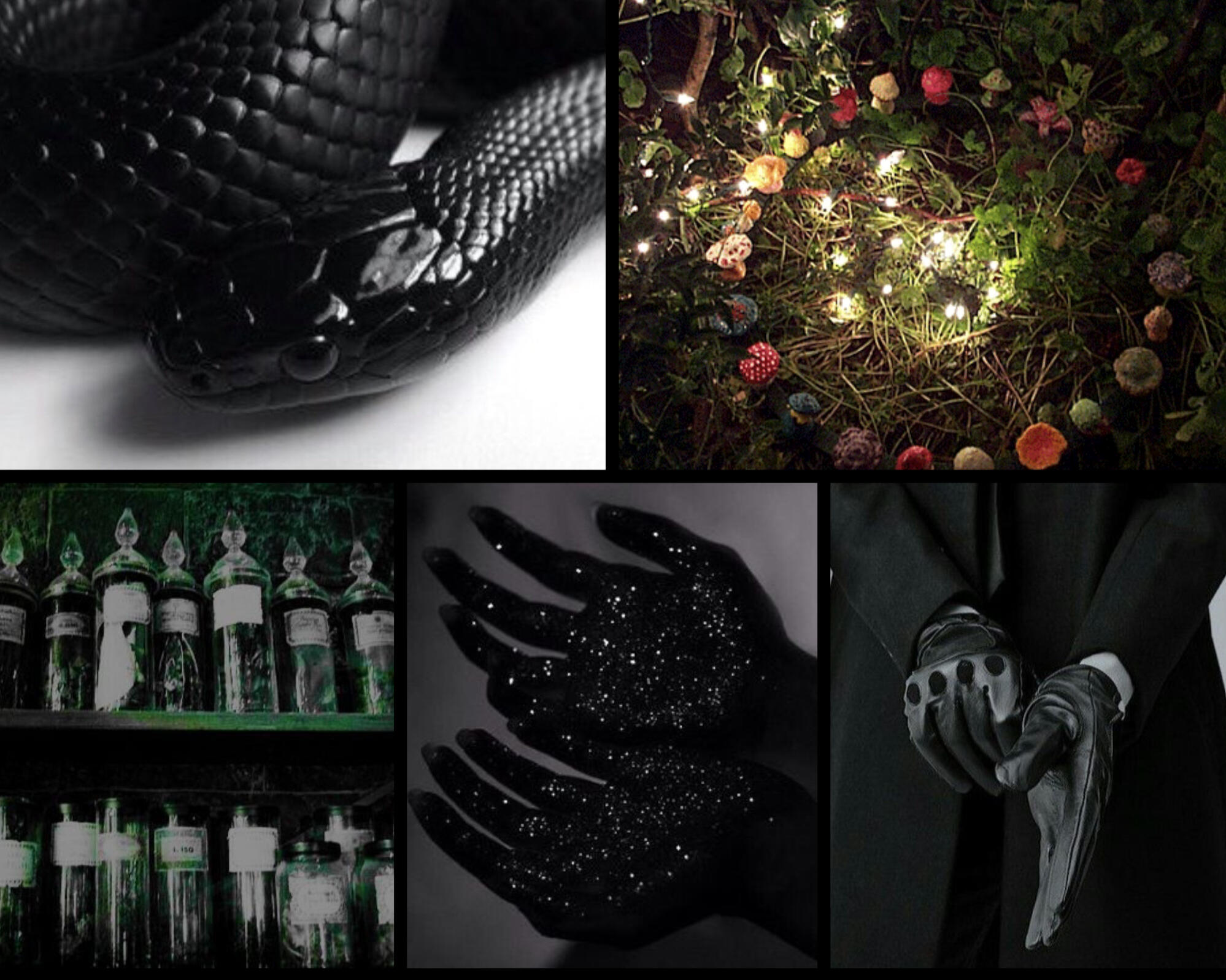 Carries a black handkerchief with a coiled snake embroidered on it.