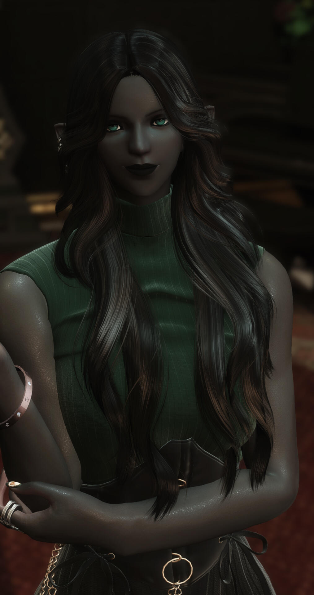 Always wearing an Ishgardian steel bangle bracelet.